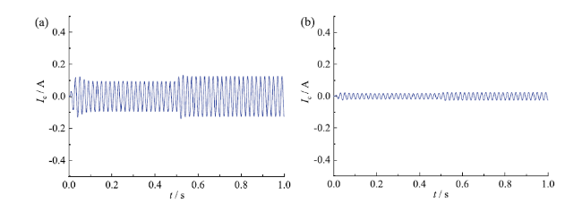 Fig. 12 Circulating current of two parallel VSGs before (a) and after (b) introducing virtual impedance图12 引入虚拟阻抗前(a)、后(b)两台VSG并联系统环流 |