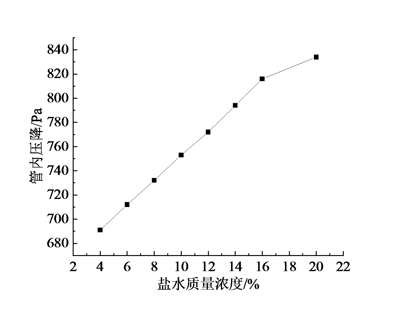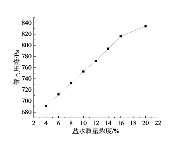 Fig. 4 Variation of fluid pressure drop with brine concentration图4 流体压降随盐水浓度变化图 |