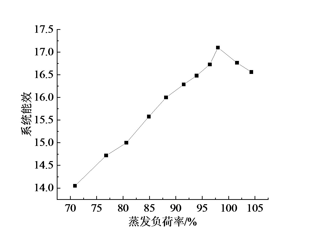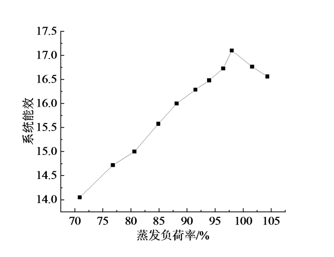 Fig. 6 The trend of MVR system energy efficiency with evaporation load in actual operation图6 实际运行时MVR系统能效随蒸发负荷率的变化趋势 |