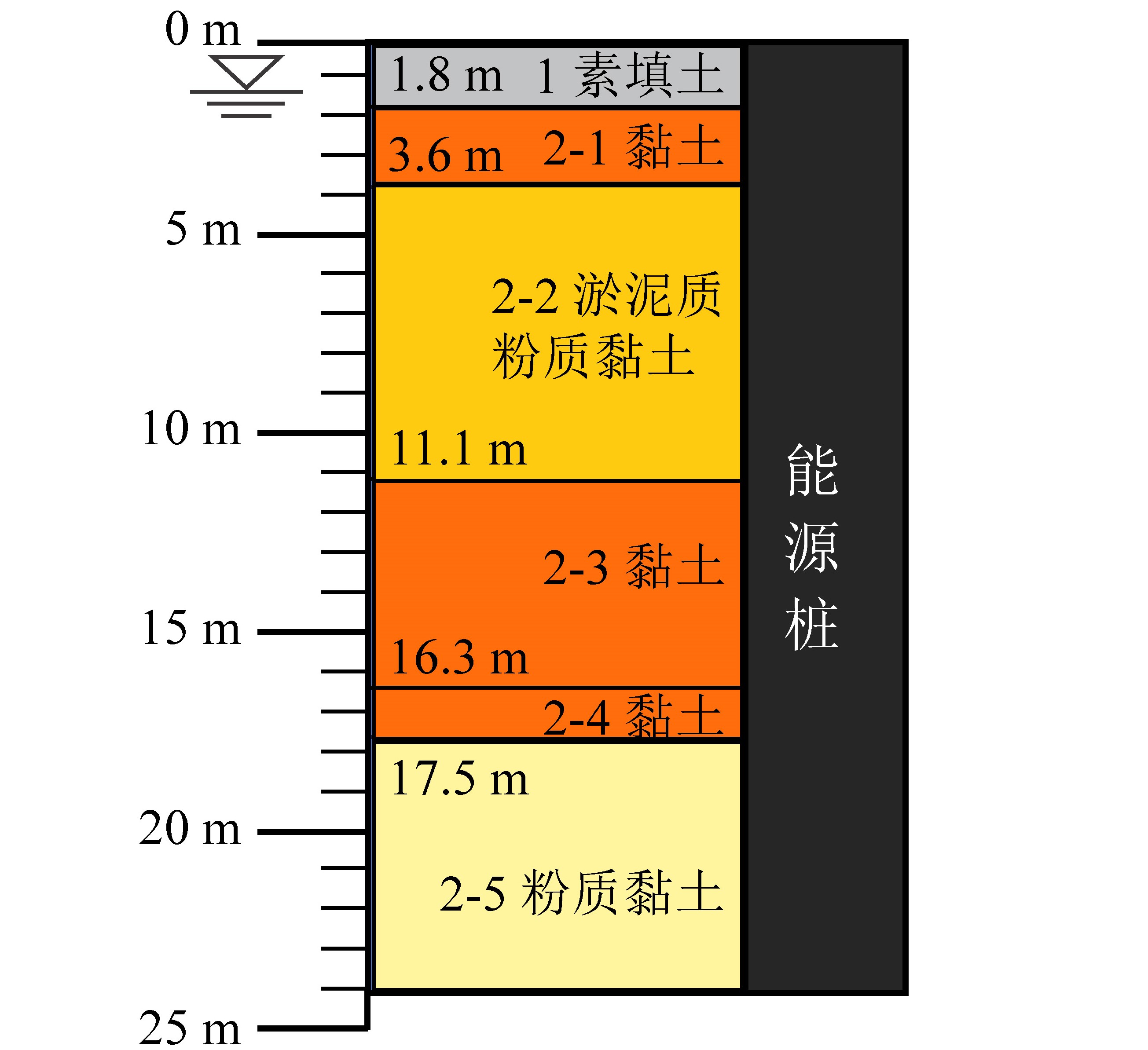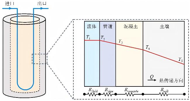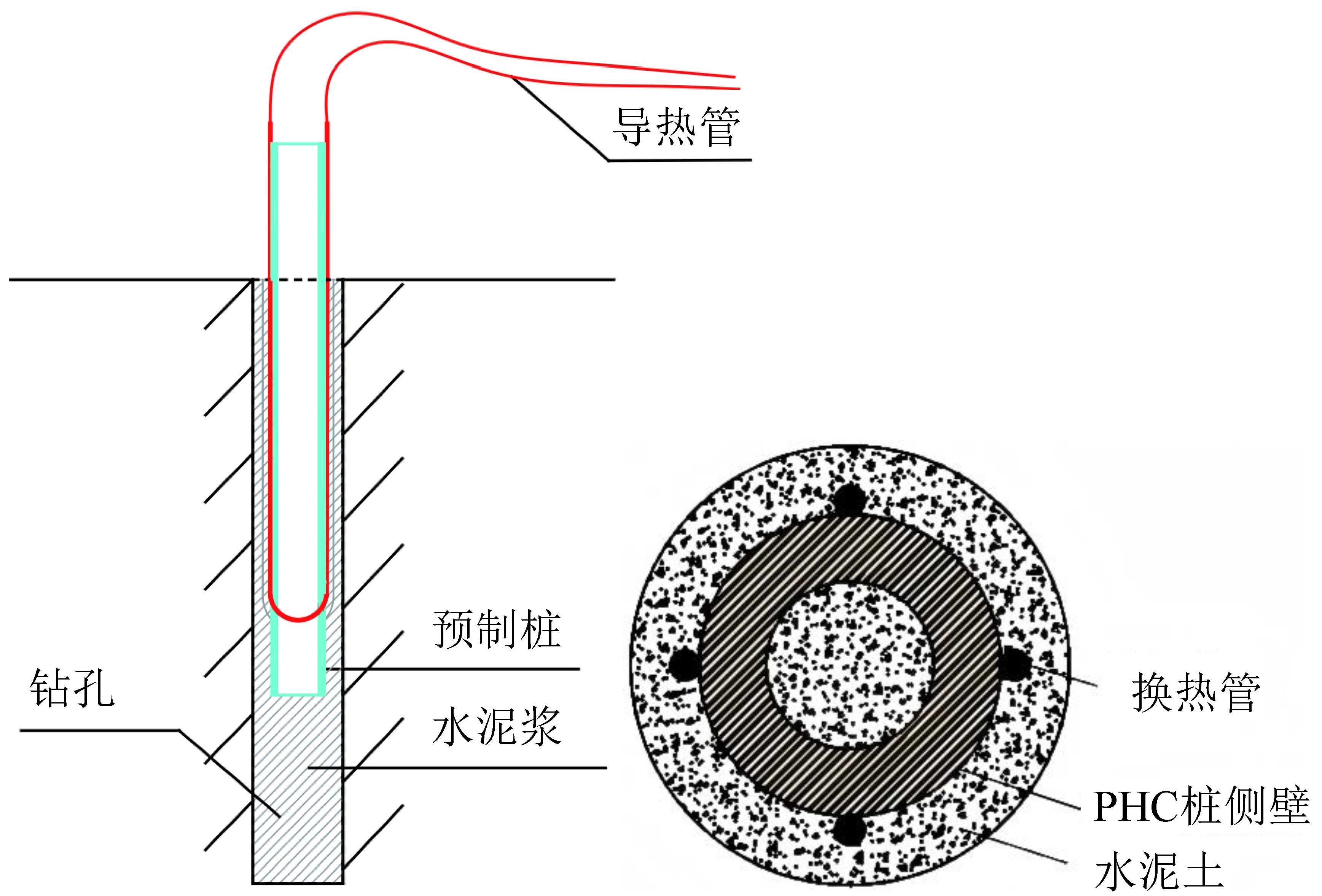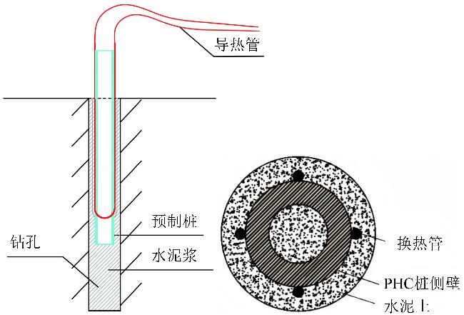 | 热性能测试 | 通过调节温度控制器,保持能源桩进口水温恒定,记录进、出水温度和循环水流量,计算钻孔的单位深度换热量 |