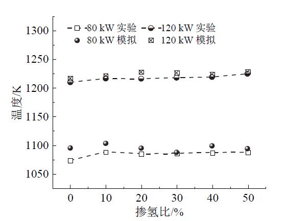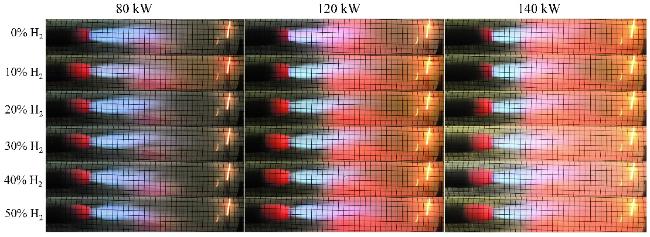 | 功率/kW | 掺氢比/% | 氢气流量/(m3/h) | 天然气流量/(m3/h) | 空气流量/(m3/h) | 烟气流量/(m3/h) |