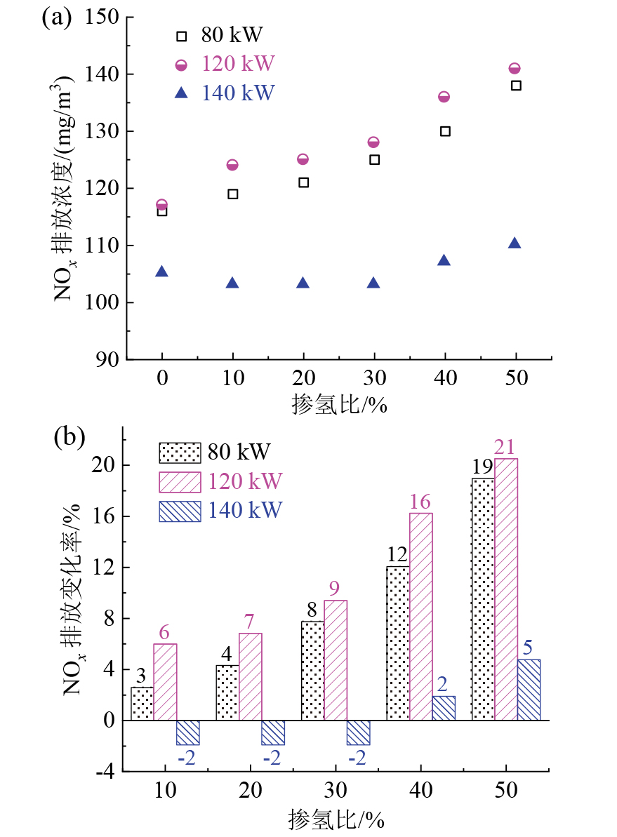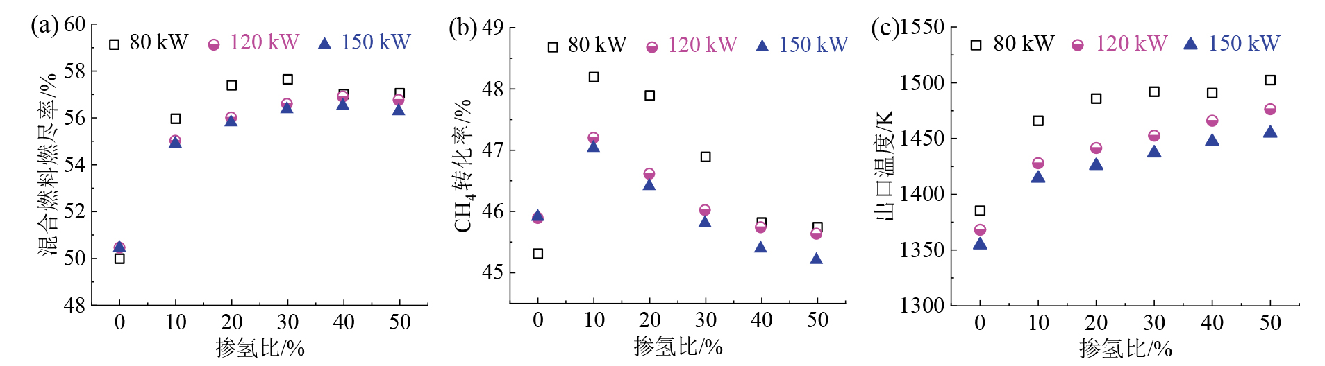 | 功率/kW | 掺氢比/% | CO2/% | CO/10−6 | H2/% | 燃烧效率/% |