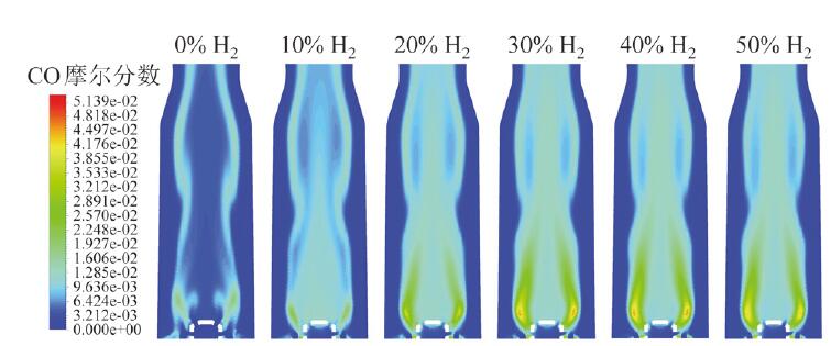 2.2 掺氢比对预燃室内火焰中间组分的影响