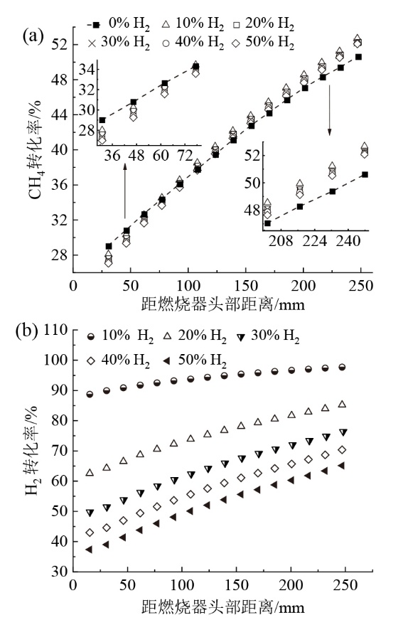 2.3 掺氢比对预燃室内燃料转化率的影响