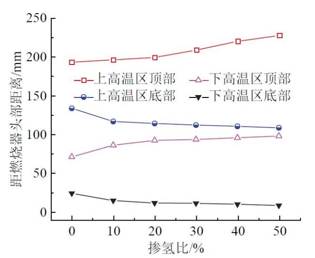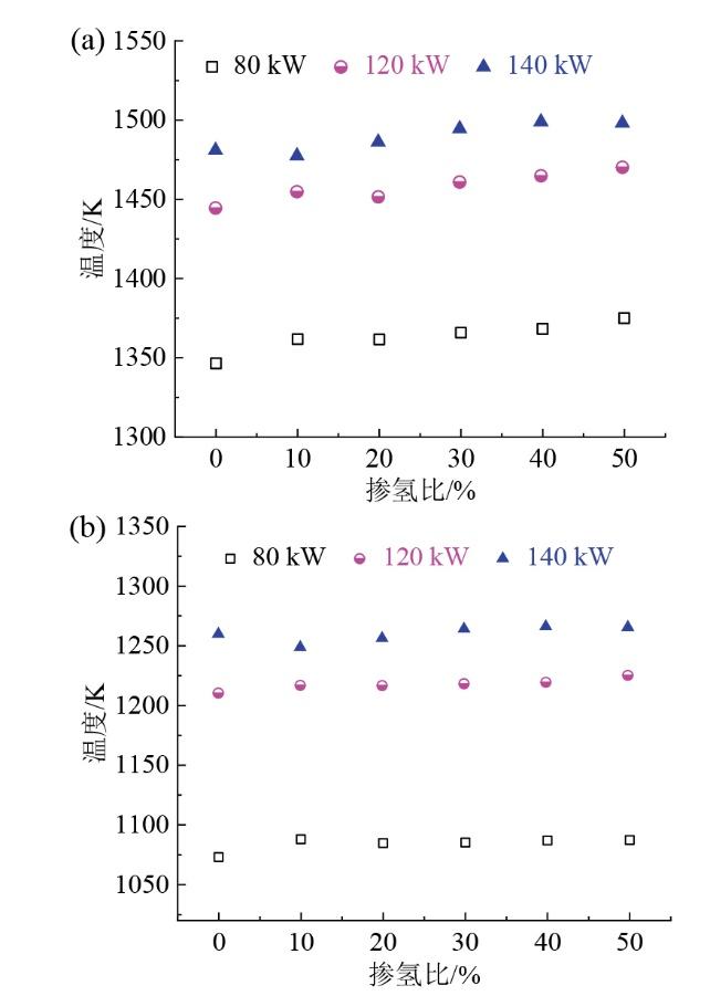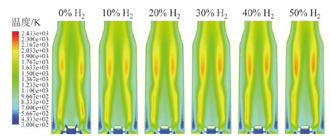 2.5.1 不同掺氢比下火焰和燃烧室温度分布