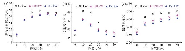 2.4 掺氢比对预燃室出口燃烧参数的影响