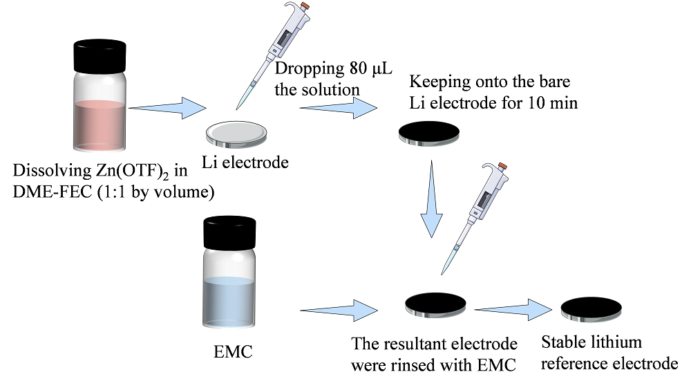 Fig. 1 Schematic illustration on the preparation of lithium metal reference electrode图1 制备锂金属参比电极的流程图 |