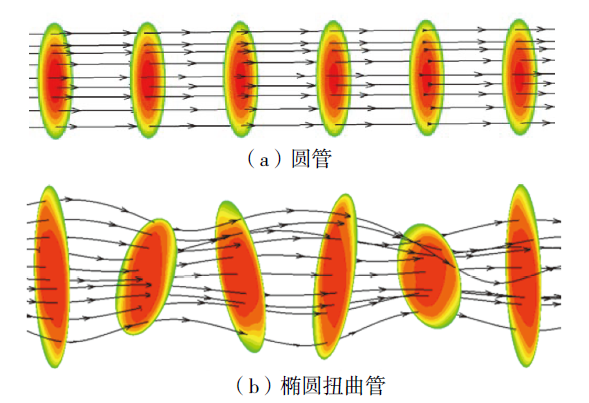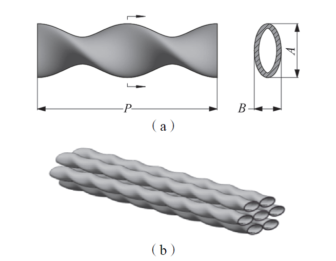 ![]() | 图1 椭圆扭曲管结构(a); 椭圆扭曲管自支撑示意图(b)Fig. 1 Twisted oval tube structure (a); self-supporting twisted oval tube (b) |