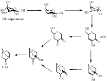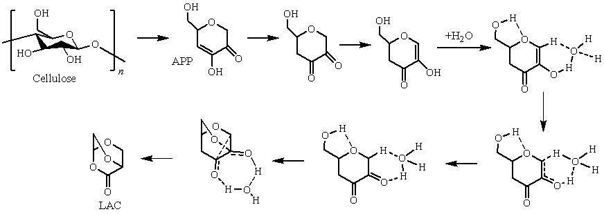 | 图3 β -d-吡喃葡萄糖热解不经APP生成LAC的反应路径[18]Fig. 3 The formation pathway of LAC without APP from β -d-glucopyranose pyrolysis[18] |