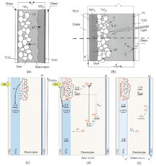 传统结构的光电致变色器件能凭借整合PV元件实现最基本的自供能, 虽然器件的变色性能足以满足光伏智能窗的光学调制要求, 但器件的光伏产能往往仅能用于着色, 且传统器件在工作时通过短路与开路控制着色/漂白, 在未处理EC层的情况下很难实现多重变色效果。更重要的是在转换时间方面, 传统PECD往往受制于电解质内氧化还原对的慢速转换, 影响了器件高速工作性能的开发。研究者们尝试从结构上改进PECD来使其兼具可媲美常规太阳能电池的光伏性能, 并进一步提高器件的转换时间。