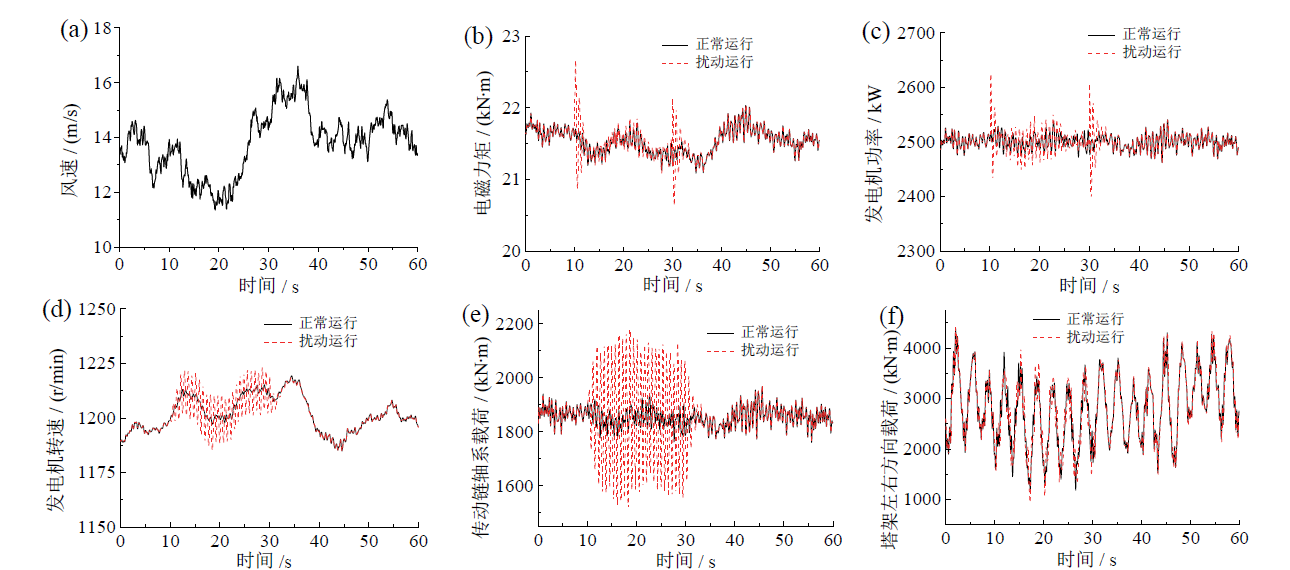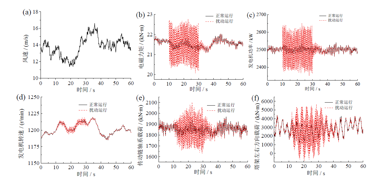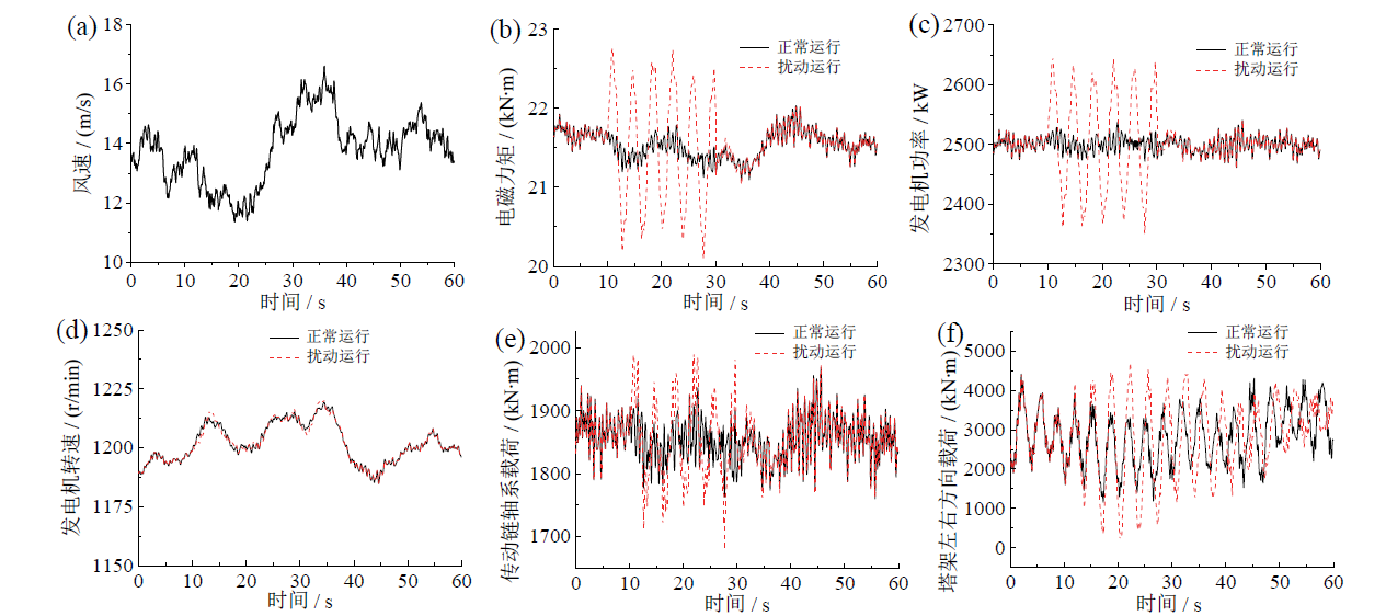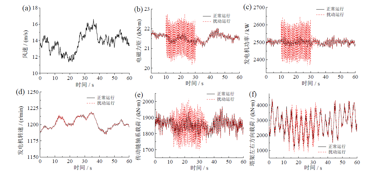 通过研究双馈风电机组不同电磁力矩振荡频率载荷响应特性, 得出以下结论: