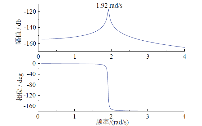 塔架左右方向载荷对发电机电磁力矩频率响应如图3所示, 结合WD 107-2500型双馈风电机组关键参数[22]可以得出ω t= 1.92 rad/s, ξ t= 0.0064。可以看出塔架左右方向响应是一个典型的二阶欠阻尼系统, 电磁力矩扰动易激发塔架左右方向晃动。