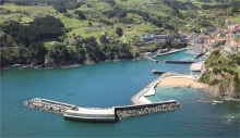 岸基固定型OWC依据海岸的有利地形建造安装, 气室前墙面朝波浪前进方向, 1999年葡萄牙在其亚速尔群岛皮科岛的海岸边建成Pico发电装置, 额定功率为400 kW, 但由于Pico发电设备的结构缺陷, 且安全性和环境条件均不足, 该装置在2018年停止运行[12]。我国于2001年在广东省汕尾市建成100 kW岸线OWC示范电站, 该电站是我国第一座并网波浪能电站, 电站采用岸式振荡水柱波浪能发电技术, 装机功率达到100 kW[13]。固定型OWC转换效率不高, 对地形要求高, 选址难度大。因此研究人员提出将电站结构整合到用于海岸或港口保护的防波堤中的想法, 这样设计既共享成本, 又使波浪能电站的施工、运行和维护变得更加容易。西班牙北部Mutriku港口实施了防波堤OWC项目(图3), 在防波堤上设计建造OWC设备, 该设备有16个气室和16个威尔斯涡轮机, 并且每个涡轮机的额定功率为18.5 kW[14]。