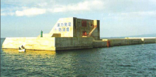 近岸固定型OWC安装在海岸附近海水较浅的海域, 其底部为直立结构。由澳大利亚Oceanlinx公司建造的“ 绿波” (Green Wave)位于水深10 m的近海处[15]。根据海床的岩土特性, 使用钢筋和混凝土将装置固定在海底。2015年韩国在其济州岛Yongsoo建造了额定功率为500 kW的立式电站, 该电站底部与海床固定相连[16]。在近海海域的沉箱式防波堤也可以和OWC相结合, 日本坂田港首次成功建造OWC与沉箱防波堤的集成装置(图4), 并于1989年开始发电。该装置波浪能到空气能的转换效率为40% ~ 80%, 总效率为10% ~ 30%[17]。