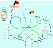 ![]() | 图2 ZnZrOx/SAPO-34复合催化剂制备低碳烯烃反应机理[11]Fig. 2 Reaction mechanism of ZnZrOx/SAPO-34 composite catalyst for preparing low-carbon olefins[11] |