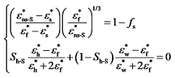 虽然BR模型能够较好地描述两相混合物的介电性质, 但若两相介电常数相差较大, 则会影响其有效性[43]。针对该问题, BRUGGEMAN[44]引入了不对称积分技术, 得到了不受分散相体积分数限制的介电混合模型。HANAI[45]将这一理论推广为复介电混合模型, 即BH模型[式(7)]。