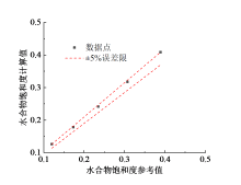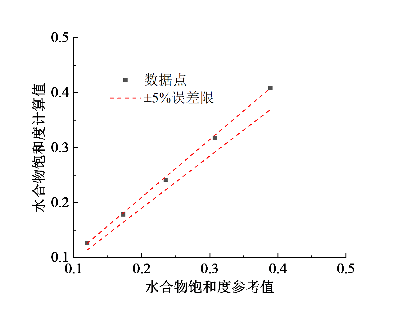 图7比较了含悬浮型水合物多孔介质中水合物饱和度的模型计算值和参考值。