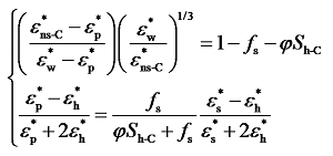 式中:ε * mix为混合物的等效复介电常数; ε * i为分散相的复介电常数; ε * e为连续相的复介电常数; fi为分散相在混合物中的体积分数。