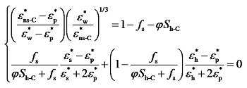 式中:ε * ns-C为含包裹型水合物多孔介质的复介电常数谱; Sh-C为水合物饱和度的模型计算值; ε * p为等效骨架颗粒相的复介电常数谱; φ 为多孔介质的孔隙度。